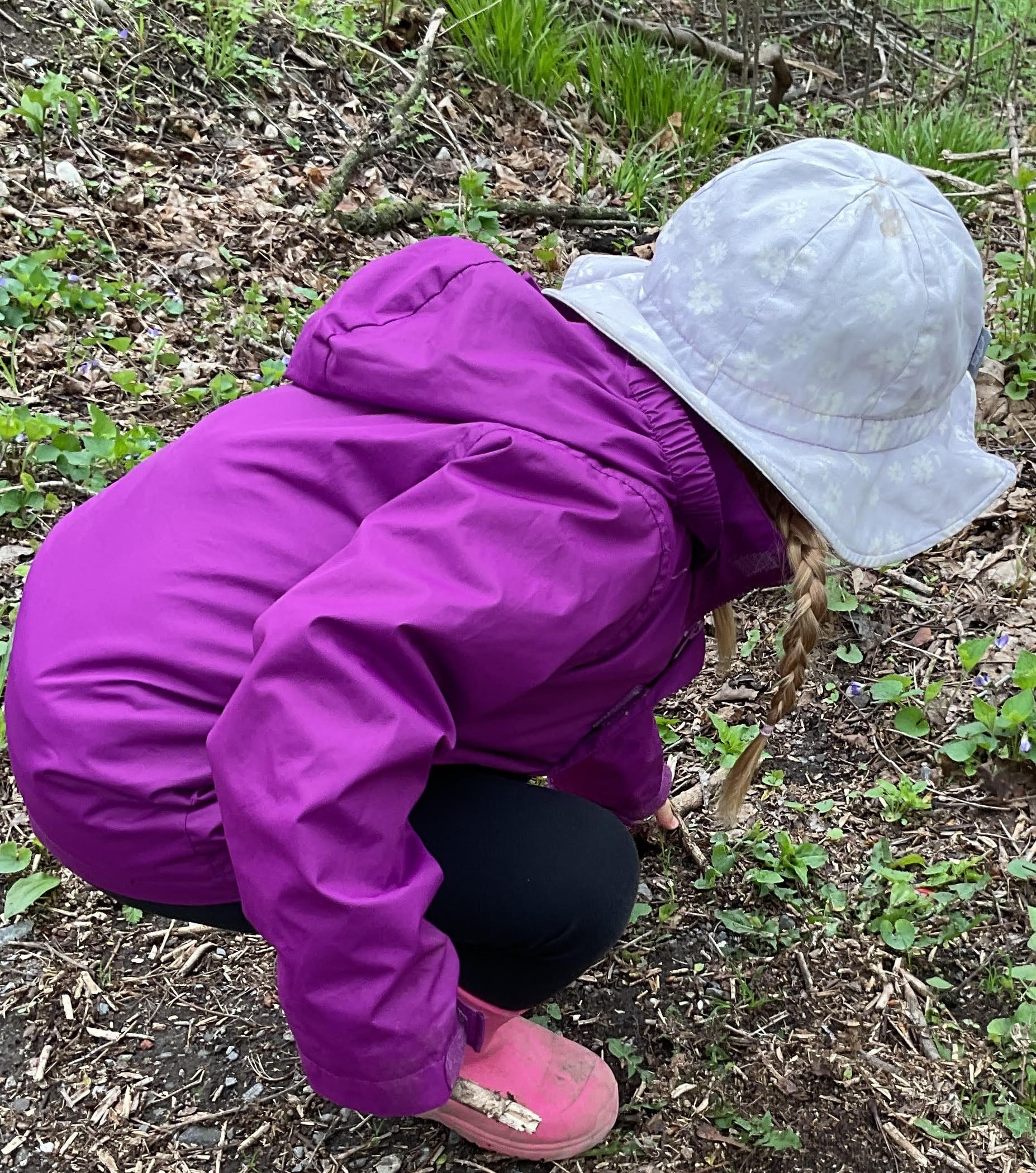 To support our interest in the changes Spring brings to nature, we decided to go for a nice walk on the Cataraqui Trail. We brought a large bag to collect nature pieces along our journey. The children were buzzing with excitement over the “treasures” they had found. They collected flowers, sticks, rocks, and a variety of leaves which sparked many wonderful conversations along the way.